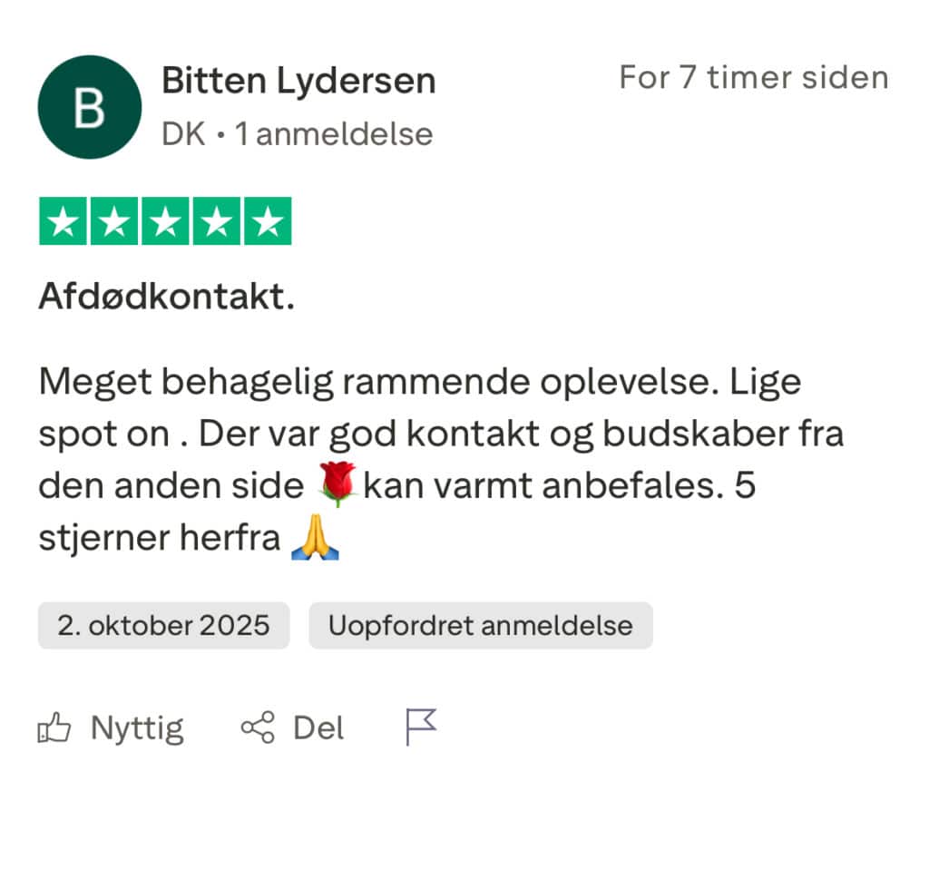 Afdødekontakt er en smuk, rørende og dybt healende oplevelse, der hjælper dig med at bearbejde tabet og opleve, at båndene mellem jer fortsat eksisterer.
